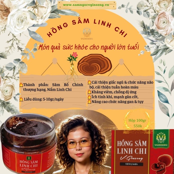 Thành Phần: Chiết xuất Hồng Sâm V-Ginseng, Chiết xuất nấm Linh Chi.