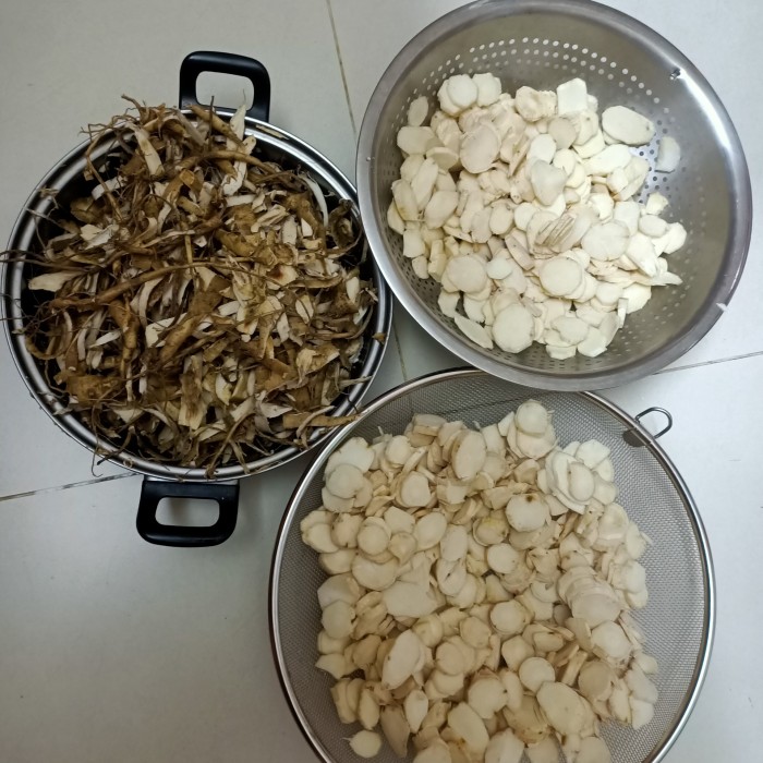 2. Chỉ thái lát phần thân củ to để ngâm mật ong, phần rễ nhánh rễ nhỏ để nấu ăn.